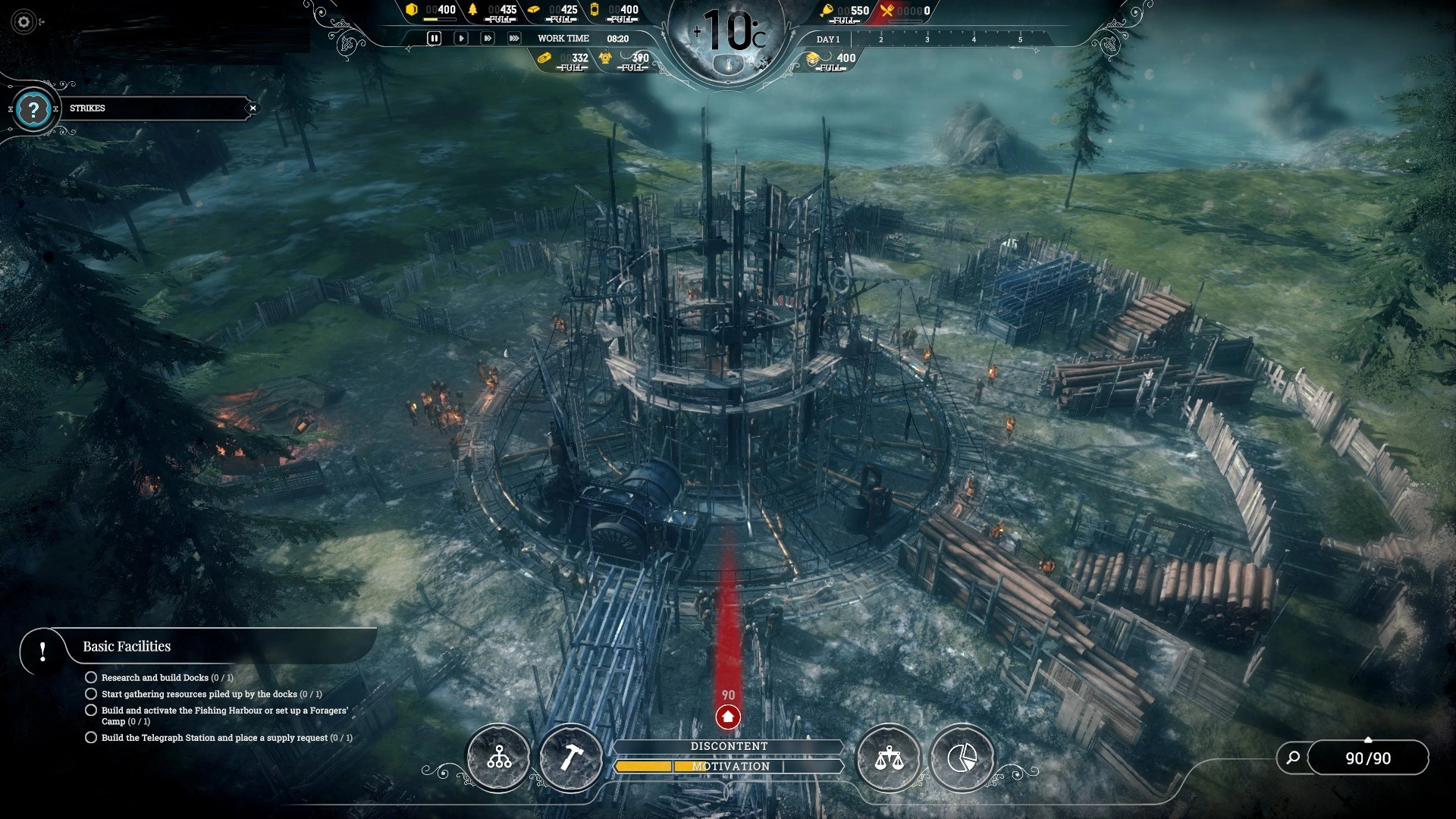 In each Frostpunk scenario, we made sure that our environment told a story, and in Frostpunk: The Last Autumn it was especially important to us, because it was the biggest DLC telling a story from before the base game scenario. Before our eyes, the atmosphere of an environment inspired by Iceland and the Faroe Islands, was changing beyond recognition. The green hills turn into a post-apocalyptic permafrost known from previous DLCs and the struggle for survival is replaced by a struggle against time to build a generator that will protect us from the cold and give hope to humanity.