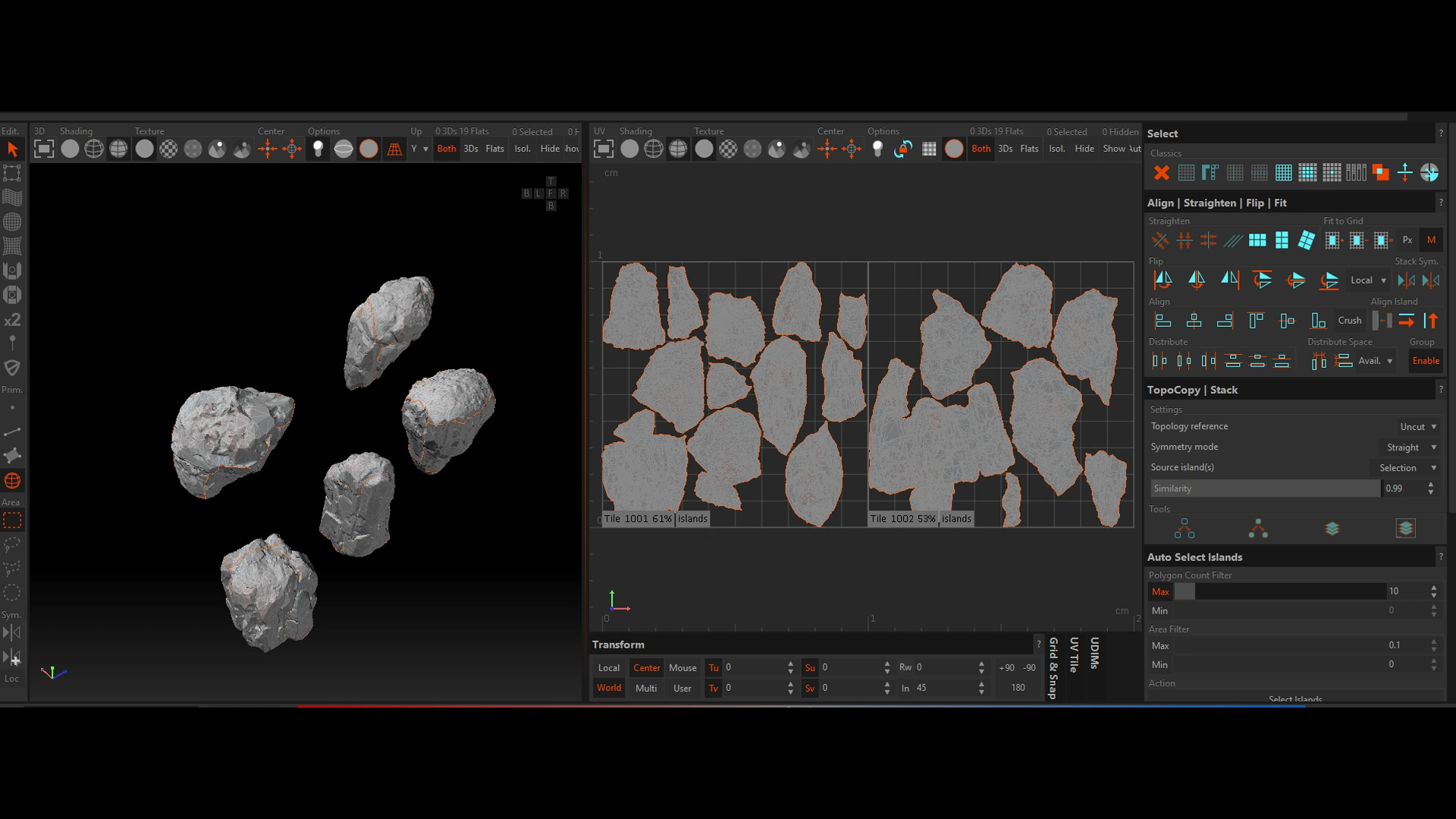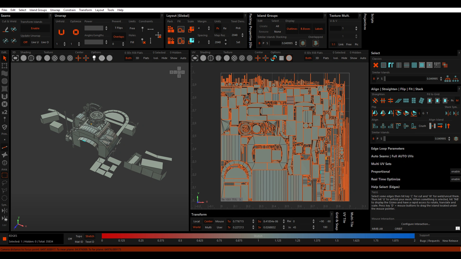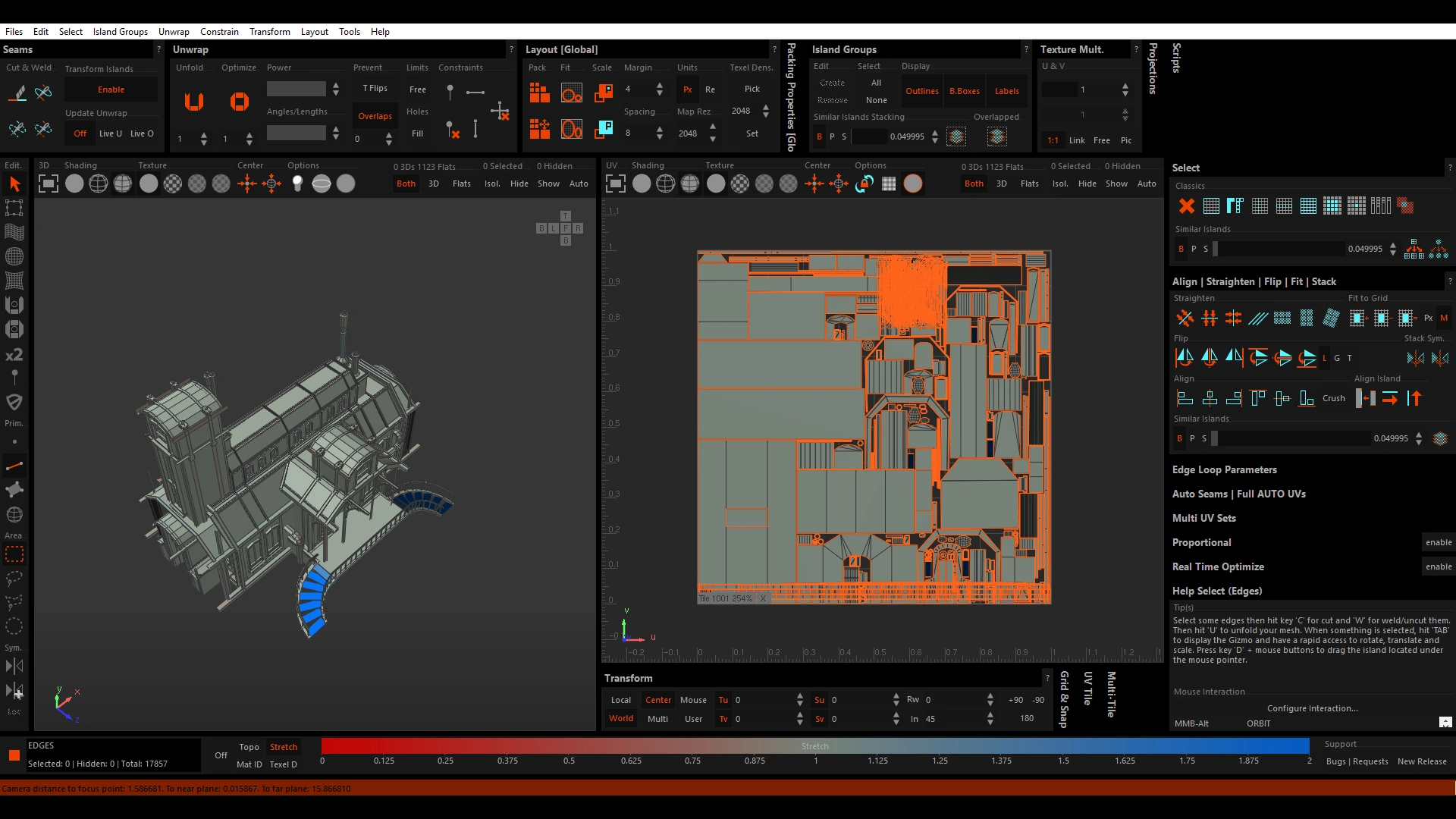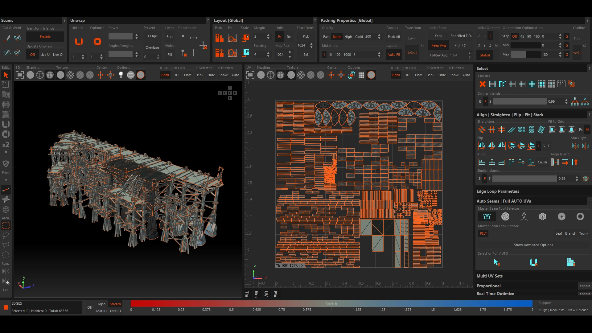 RizomUV was a great convenience, the quality of the unwrap algorithm is amazing, it works especially well in very complex models full of small details. Something that particularly helped me with the speed of working on the models was the clarity of the interface and the good placement of hotkeys.